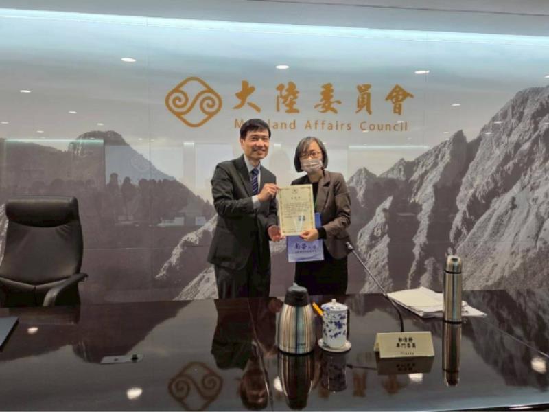 南華大學國際事務與企業學系「亞太國際關係」課程至校外移地教學,孫國祥教授(左)致贈感謝狀予陸委會專委鄭偉靜(右)。