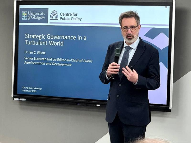 ▲英國格拉斯哥大學Ian C Elliott博士分享專業見解,促進跨國學術交流。
