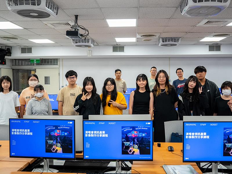 在系列活動中,社團特別邀請資深動畫師暨 VJ 講師 CACA 分享大型演唱會影像製作實務,從案主需求分析、影像分工設計、工具運用到現場整合執行,透過真實案例完整解析影像如何與燈光、舞台與導播系統無縫協作,讓學生深入理解大型專案中影像設計的實戰應用,強化專業視野與產業理解力。