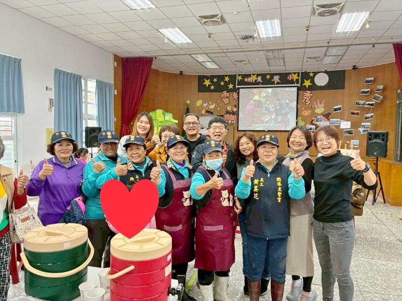 圖3:國科會人社計畫共同主持人呂欣怡教授(後排左2)、彭俊亨教授(後排左3)、嘉大人社團隊陳明聰院長(後排中)等師長與參與活動的太聖宮志工廚娘合影。