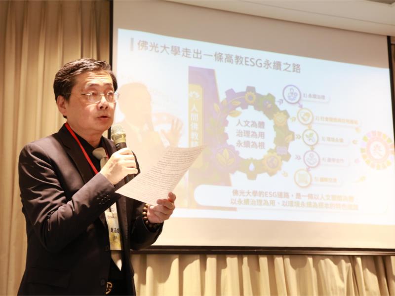 佛光大學近日舉行《2024 年 ESG 永續發展報告書》發表記者會,現場貴賓雲集。校長趙涵?親自說明學校在永續治理、社會責任與環境行動上的整體成果與未來藍圖。趙校長指出,面對少子化衝擊與高教競爭日益激烈的環境,佛光大學以創辦人星雲大師的人文智慧為指引,逐步發展出一條「人文為體、治理為用、永續為根」的高教永續發展特色之路。