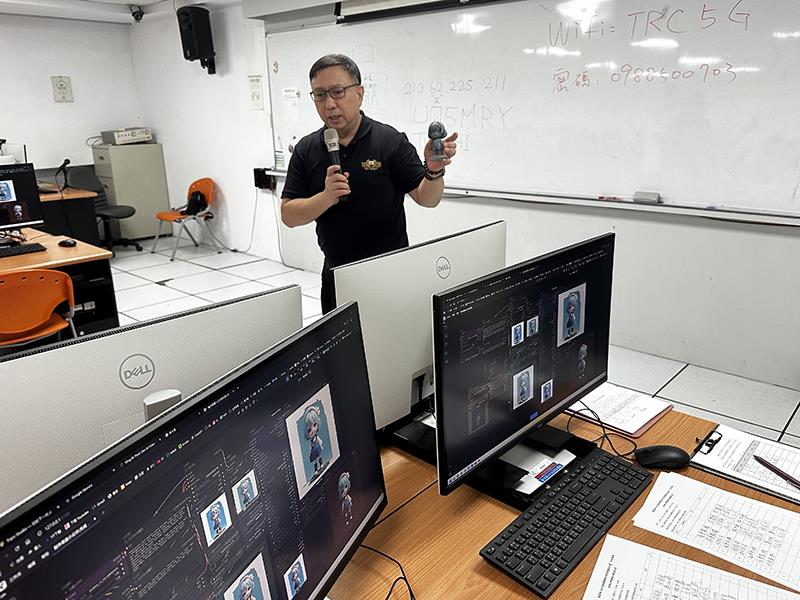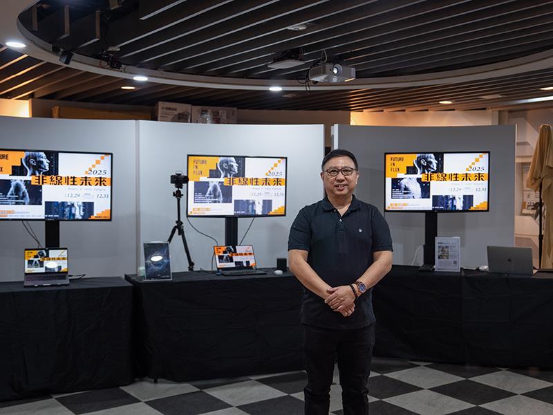 彭慶東老師具有跨領域的背景,研究與教學專長橫跨互動媒體設計、遊戲設計、電腦動畫與生成式AI媒體設計等領域。彭老師在課堂上強調「從工具到作品、從概念到系統」的教學路徑,生成式AI與互動系統只是工具,真正重要的是設計思維與團隊合作,透過專題實作、體感互動、以及跨領域整合訓練,讓學生不只是會使用工具,而能設計可呈現、可互動、可產業應用的完整作品。
