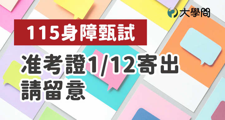 115年「身障甄試」的准考證將於115年1月12日以掛號寄出,考生若遲至1月15日以後仍未收到准考證,團體報名的考生,請洽代辦報名的學校單位;個別報名的考生,請直接電洽「身心障礙甄試委員會」(電話:03-4227151轉57149)確認寄送狀況。