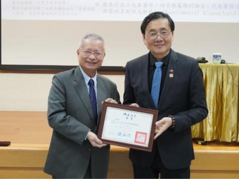 聘任儀式後,接續舉辦「佛學與中醫」專題講座,由國際中醫針灸權威林昭庚院士主講,吸引約 70 位師生與貴賓踴躍參與。林院士結合深厚的中西醫背景,引領聽眾探索佛學思想與中醫養生智慧之間的關聯,深入淺出的精闢解析獲得現場高度迴響。交流環節中,佛教學院院長夏允中請益「佛教學院未來應如何發展學術研究」,林院士回應指出:「佛學應將智慧落實於生活,彼此成就、互惠互利。」為佛教學術研究轉化為社會實踐指引清晰方向。