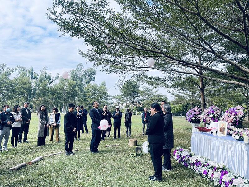 南華大學生命禮儀研究中心舉辦「自然葬儀式的創新與展演」活動,活動尾聲進行默禱誦詩。