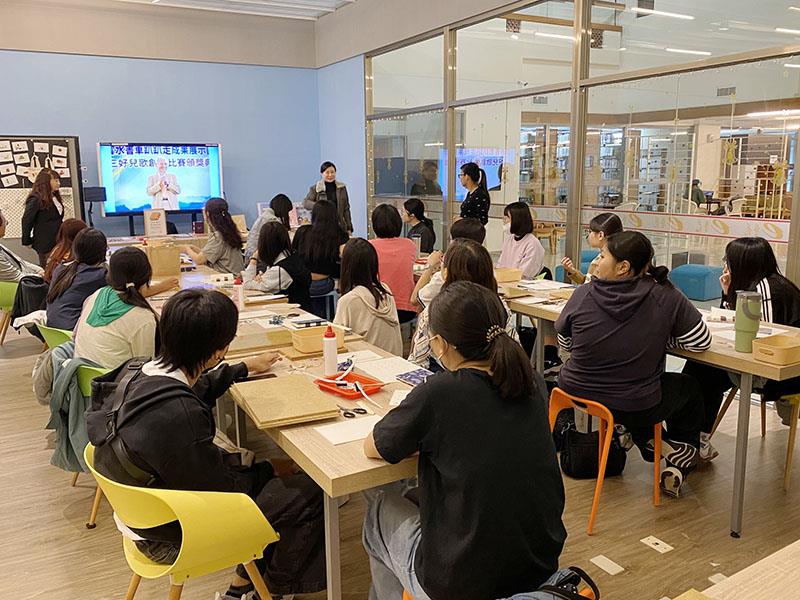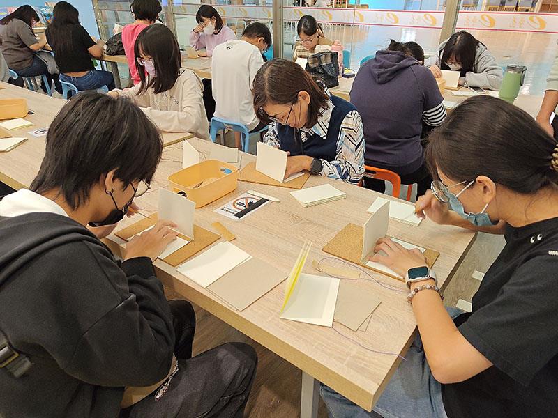 南華大學圖書館舉辦「USR繪本分享會與線裝手工書工作坊」,透過實作課程,學員體驗手工書工藝。