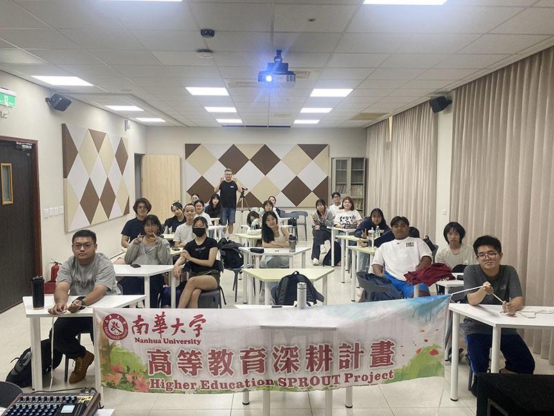 南華大學民音系開設劇場設計課程,邀請卓明勳老師主講〈Patch the Light:從舞臺到感官的光之設計〉,並合影留念。