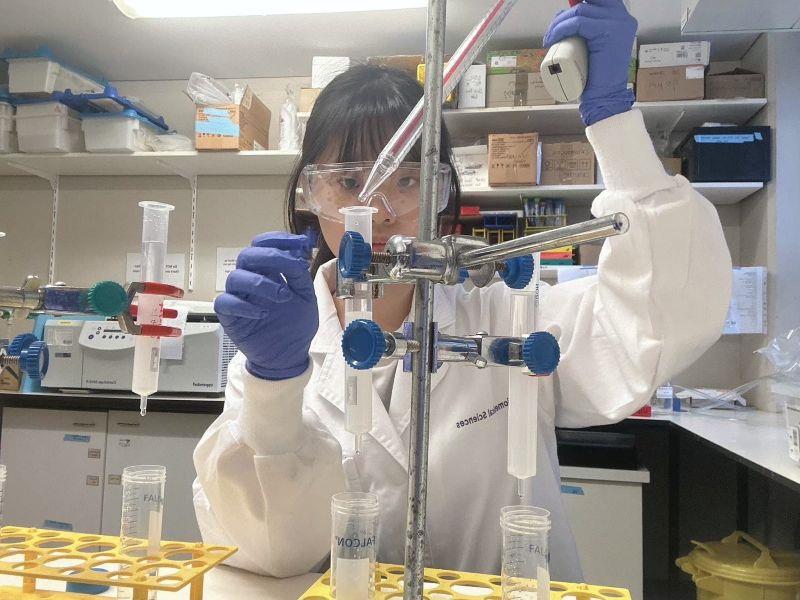 賴妤瑄就讀嘉義市興華中學時,便對生化科技領域展現濃厚興趣。她從興華中學升學輔導管道得知,嘉大生化系長期與海外名校合作,擁有豐富的國際實習機會,因此選擇以「特殊選才」管道進入嘉大生化系就讀。進入大學後,賴妤瑄目標明確,大一起便積極準備TOEIC考試,大三進入張心怡教授實驗室進行專題研究。為了爭取澳洲實習機會,她更挑戰IELTS雅思考試並獲得6.5的高分,為出國研究打下穩固基礎。