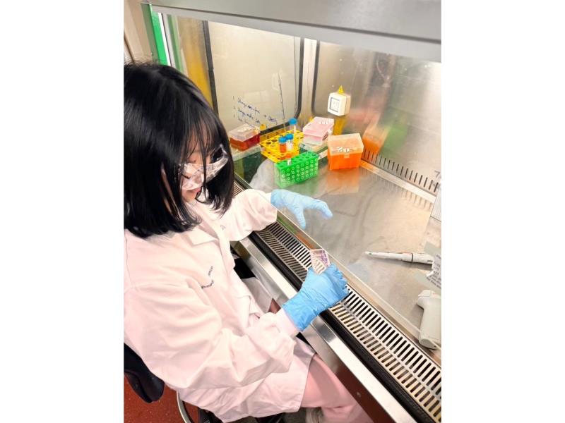 圖3:賴妤瑄同學進行細胞培養實驗來取細胞外泌體 (Exosomes)。