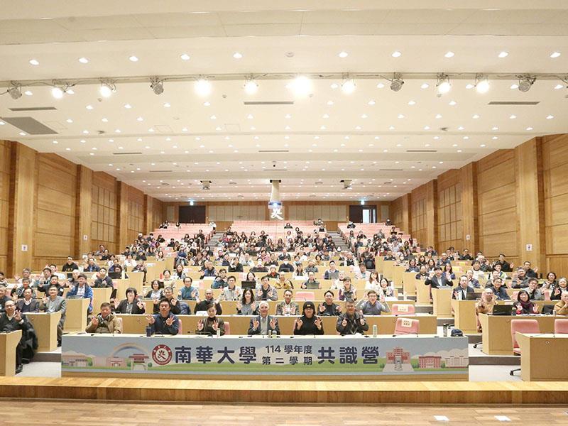 南華大學每年於寒假開學前皆會舉辦「南華招生共識營」,邀集全體教師齊聚一堂,透過交流與討論凝聚招生方向與行動共識,以提升整體招生效益。為及早凝聚共識提升招生效益,今(115)年特別於寒假前1月12日即辦理共識營,以「招生」為核心主題,展現全校齊心協力、集體創作的精神。