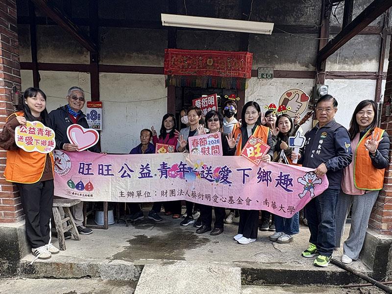 南華大學長期推動「三好運動」,落實「做好事、說好話、存好心」的教育理念,近年來更持續與蔡衍明愛心基金會合作,舉辦「公益青年送愛下鄉趣」活動,深入社區關懷弱勢族群。南華大學於1月8日再度攜手基金會辦理「2026春節歲末關懷活動」,由校長高俊雄率領師長與學生走入社區,為弱勢家庭送上溫暖與祝福。