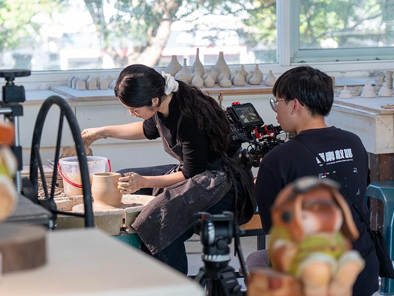 在製作團隊方面,《台灣工藝 飛飛飛》MV 由嶺東科大數媒系洪瑞陽老師擔任導演並帶領數媒系學生共同參與完成,在專業教師指導下,學生實際投入影像企劃、分鏡設計、拍攝執行、動畫與後期剪輯等製作流程,透過真實專案的操作,累積跨領域合作與大型影像製作的實務經驗。此一產學合作模式不僅讓學生將課堂所學轉化為具體成果,也培養其在文化內容製作、團隊協作與專案管理上的專業能力。