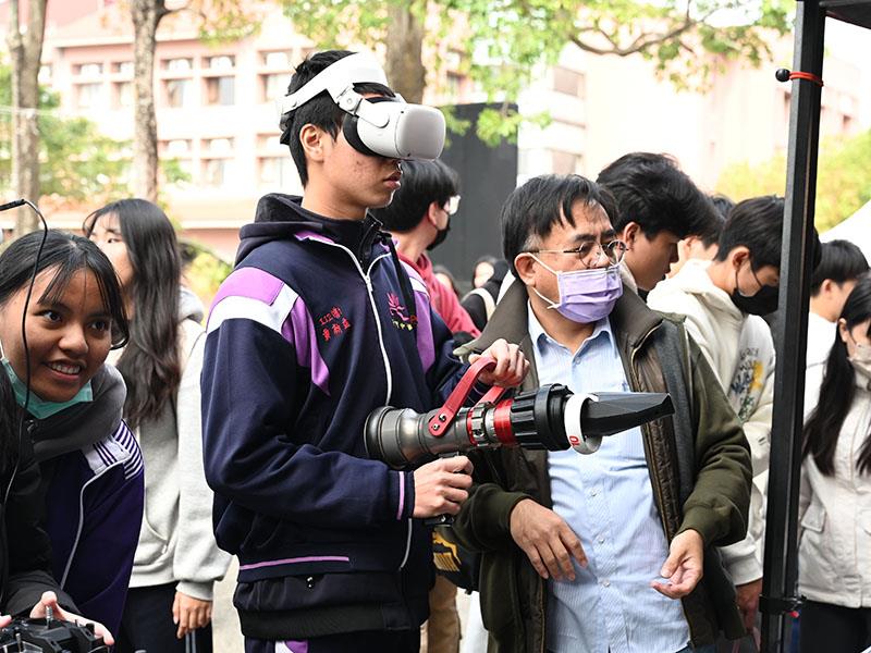 南華大學舉辦校園走讀活動,高中生蒞臨參訪並體驗資訊工程學系MR(混合實境)消防瞄子