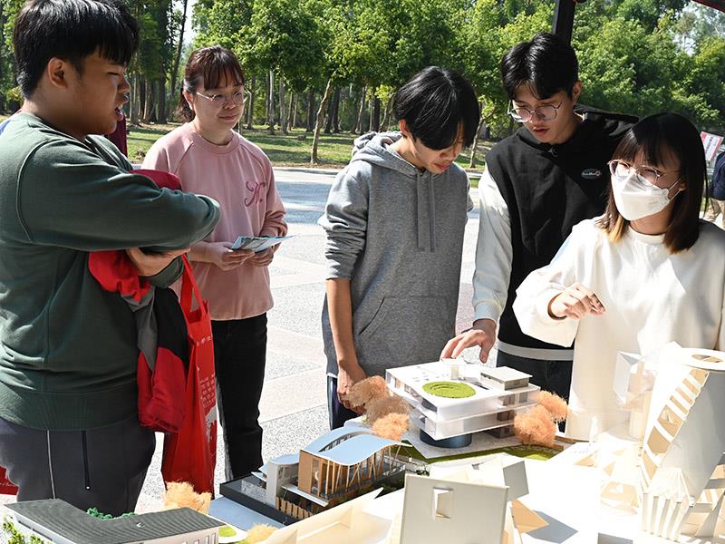 南華大學舉辦校園走讀活動,高中生參觀建築學系展示區,了解學系特色