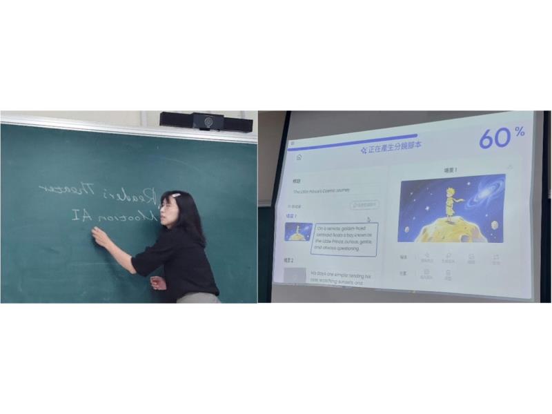 有學生興奮地分享,有時 AI 生成的畫面,比我們原本想像的還要大膽!從文字轉譯到影音創作的歷程,讓學生在揣摩角色語氣、情緒與節奏時,與經典文本產生更深層的連結,不僅有效提升發音與語調掌握能力,也在跨工具協作中培養出面向未來職場的重要「AI 協作力」。