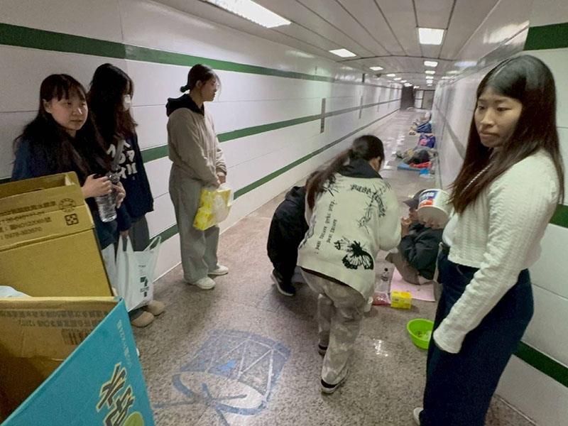 嘉義火車站前人潮絡繹不絕,是城市重要門面,同時也是部分弱勢族群暫時棲身之處。此次行動由生死學系社工組助理教授蔡長穎帶領學生團隊,在寒風中主動關懷露宿者與經濟弱勢民眾,並逐一發送棉被、防寒用品與熱湯餐食,更透過簡單的問候與傾聽,了解他們背後的生命故事與生活處境。