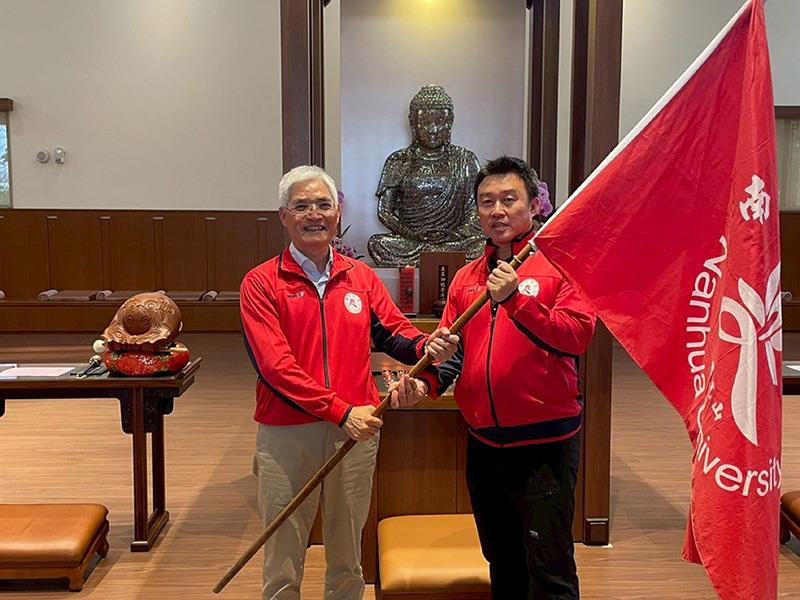 南華大學與三好體育協會於3月25日共同舉行「115年全國成棒甲組春季聯賽授旗暨勉勵儀式」,為即將出征賽事的甲組棒球隊授旗加持。透過結合佛法精神與運動競技,期勉選手以穩定身心與堅定信念迎戰賽場。