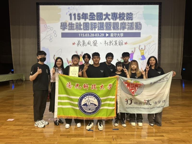 由教育部主辦、義守大學承辦「115年全國大專校院學生社團評選暨觀摩活動」,於3月28日至29日盛大舉行。本次活動匯聚全台116所大專校院、共244個學生社團參與,競爭激烈,為全國大專社團年度重要指標賽事。在眾多優秀隊伍中,僑光科技大學行銷與流通管理系系學會表現亮眼,成功脫穎而出,榮獲「技專校院組 自治性、綜合性類」甲等獎,充分展現學生在組織經營、活動企劃與團隊協作上的扎實能力與執行成果。