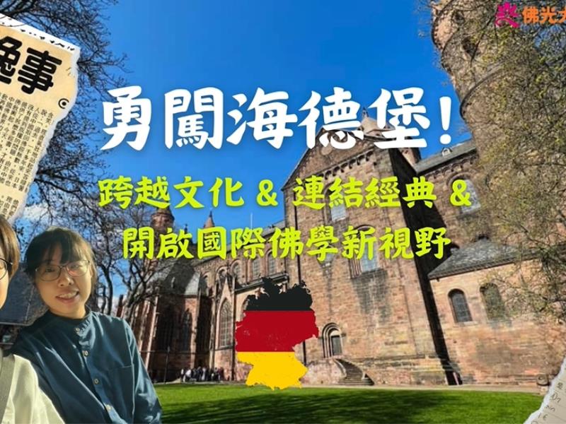 佛光大學佛教學系博士班張冠葶與鄧葶涓同學,曾於德國海德堡大學,在海德堡科學人文研究院中國佛教石經研究中心蔡穗玲教授的指導下,參與為期三個月的中國佛教石經校勘研究計畫。 兩位同學在跨文化的學術環境中,將佛光大學課堂所學實踐於國際舞台,從異體字比對、碑刻錄文到經文標點的細節處理,皆展現出紮實的佛典訓練與研究能力。