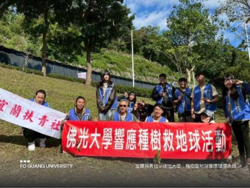 宜蘭扶青社舉辦「種樹愛地球」活動,並由佛光大學及宜蘭扶輪社共同協辦,活動於佛光大學舉行。透過實際植樹行動,展現青年世代與在地社團對環境永續與生態保育的重視。 活動由宜蘭扶青社社長葉年翔、宜蘭扶輪社社友呂柏凱,以及佛光大學總務長吳振財共同主持,象徵扶青社、扶輪社與校方跨界合作,攜手推動環境保護與永續發展。現場共種植日本女貞樹30棵,期望藉由綠化校園環境,提升生態多樣性,營造更友善的學習空間。 除植樹活動外,主辦單位亦結合環境教育內容,由佛光大學環境教育老師林珮瑀進行校園生態導覽,向參與人員介紹校內動植物特色與環境資源,讓與會者在實際行動中深化對環境保護議題的認識。 主辦單位表示,透過此次「種樹愛地球」活動,不僅強化宜蘭扶青社與在地學校之間的合作交流,也期待藉由具體行動喚起社會大眾對環境永續與生態保育的關注,持續為打造友善環境與永續社會共同努力。