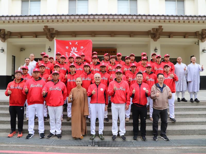 114學年度大專盃棒球聯賽公開一級即將於11月25日開打,南華大學甲組棒球隊於11月19日,在南華大學百萬人興學紀念館禪堂舉行「2025年大專棒球聯賽公開一級賽事授旗暨祈福典禮」。由駐校董事覺禹法師親自主持,帶領校長高俊雄、學務長暨體育長何應志、運動與健康促進學士學位學程主任許伯陽及全體教練與選手一同恭讀《般若波羅蜜多心經》及創辦人星雲大師《為運動員祈願文》,為球隊出征注入祝福與智慧。