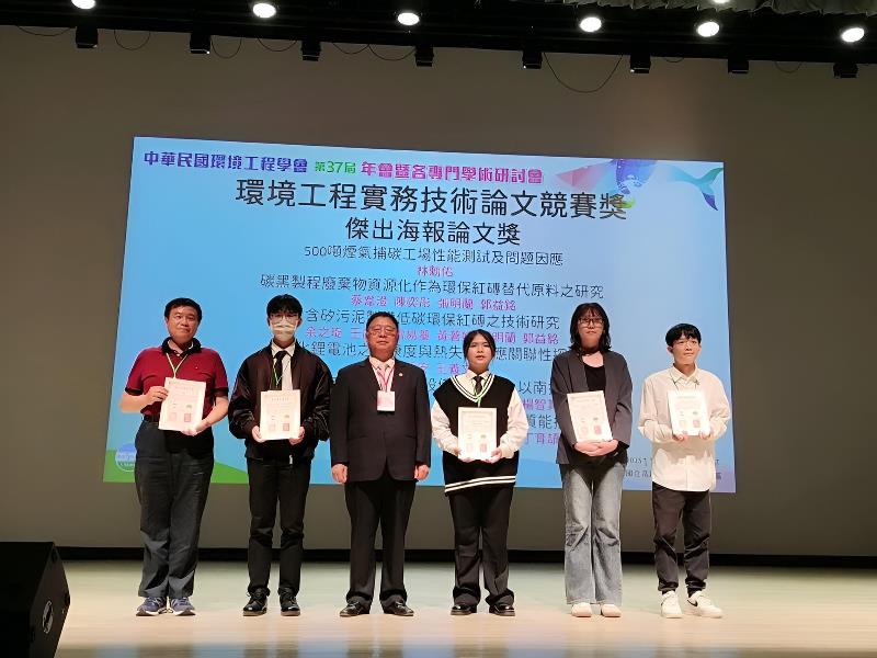 中華醫事科技大學「環境與安全衛生工程系」參與第37屆全國環境工程年會暨「2025廢棄物處理技術、空氣污染與氣候變遷研討會」成果亮眼,大放異彩! 本次年會中,郭益銘教授團隊不僅主辦「廢棄物處理技術研討會」,更與劉保文教授專題團隊共計20位師生,發表11篇研究論文,展現環安系在環境工程與永續治理領域的深厚研究能量。 其中,郭益銘教授團隊以「環保紅磚資源化製作技術」為主題,榮獲兩篇「114年度環境工程實務技術研討會傑出海報論文獎」,成果獲評審高度肯定。