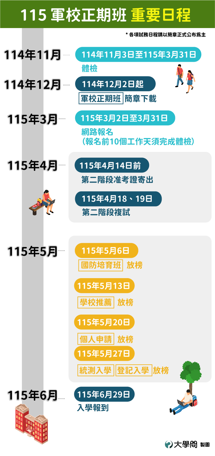 「軍校正期班」的入學方式分為「國防培育班」、「登記入學」、「學校推薦」、「個人申請」及「統測入學」五種。